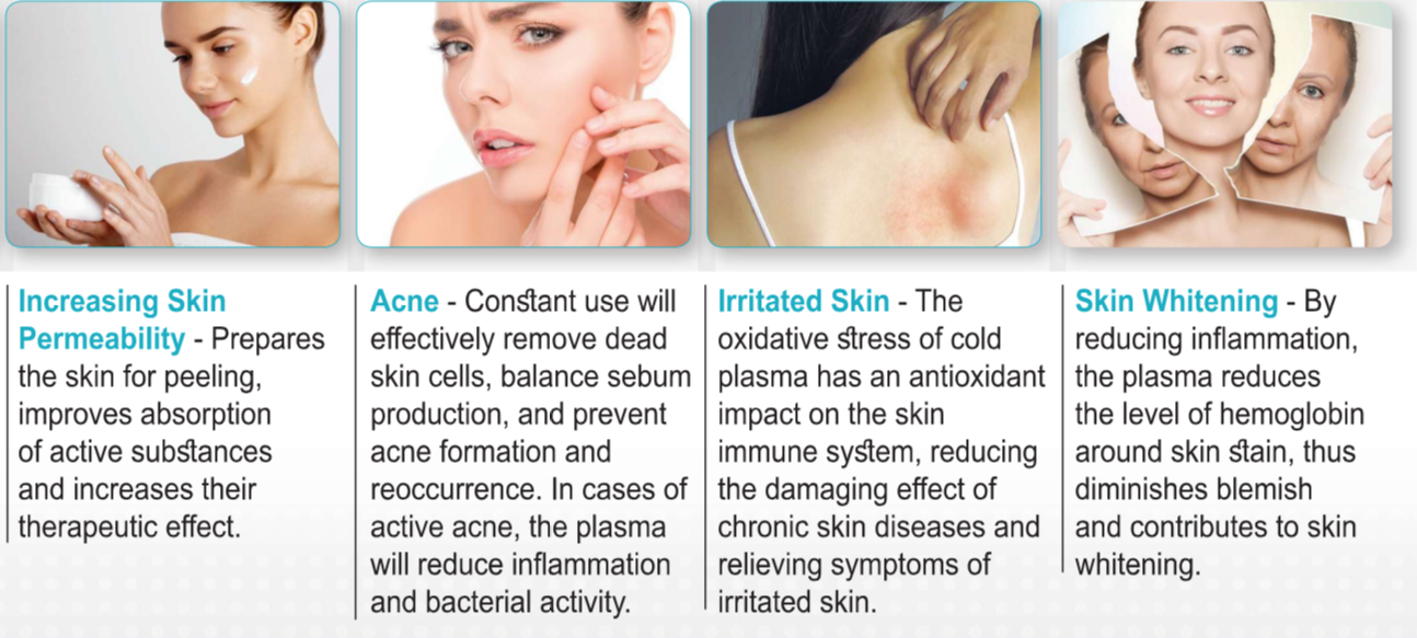 The oxidative stress of cold plasma has an antioxidant impact on the skin immune system, reducing the damaging effects of chronic skin diseases, such as atopic dermatitis, eczema, and seborrhea, which manifest in an inflamed, irritated, dehydrated, and rough skin.